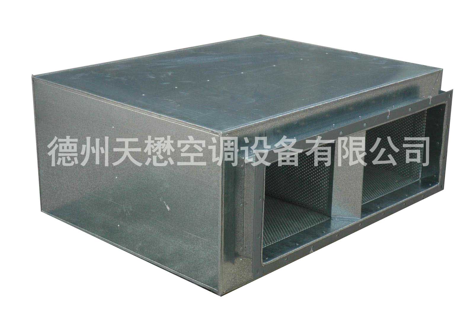 消聲靜壓箱內(nèi)表面貼有吸音減震材料,可起到消聲作用,并且氣流進入靜壓箱后可減小氣流動壓,提高靜壓,起到穩(wěn)定氣流的作用。消聲靜壓箱通常安裝在空調(diào)系統(tǒng)的房間送風口和空調(diào)機出口處。